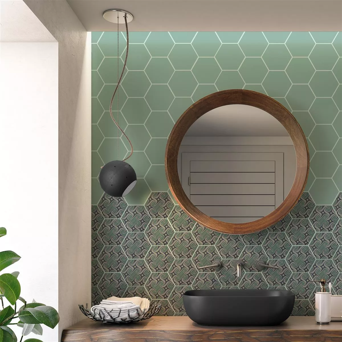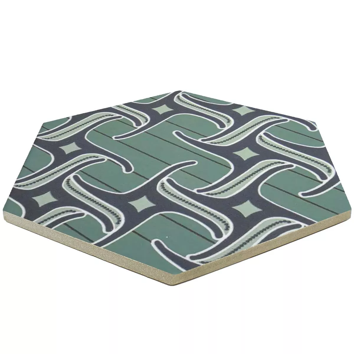 Porculanske keramičke pločice “Modena Hexagon Decor 4” pravo su umjetničko djelo za vašu sobu. S debljinom od 10 mm savršeni su za mokre prostore, tuševe, kupaonice, kuhinje, dnevne sobe i unutarnje prostore. Mat površina i ornamentalni motiv u plavo-zelenoj boji stvaraju jedinstvenu atmosferu.