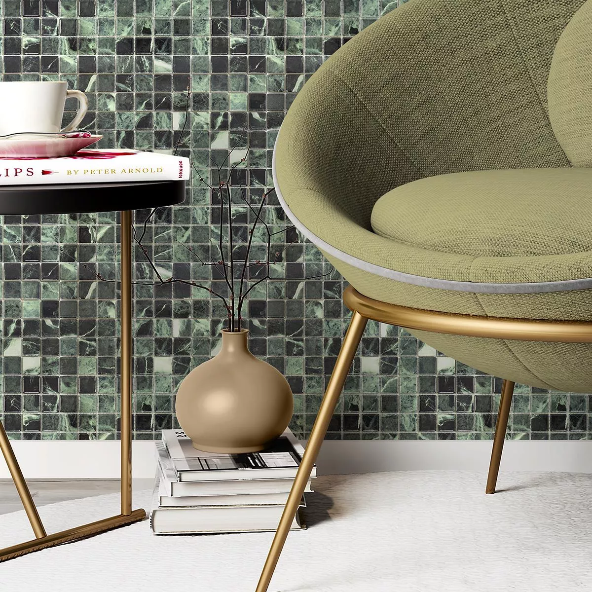 Keramički Mozaik Pločice Elysium Imitacija Mramora Zelena 23