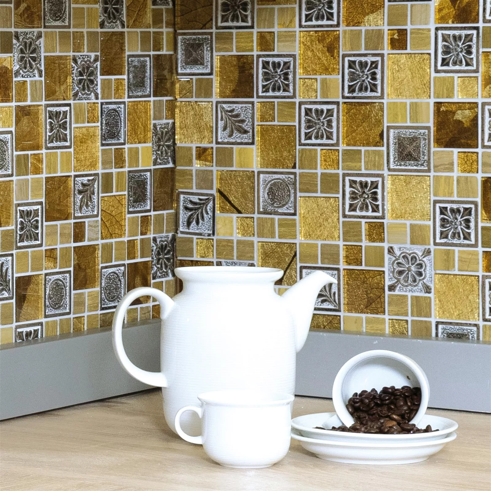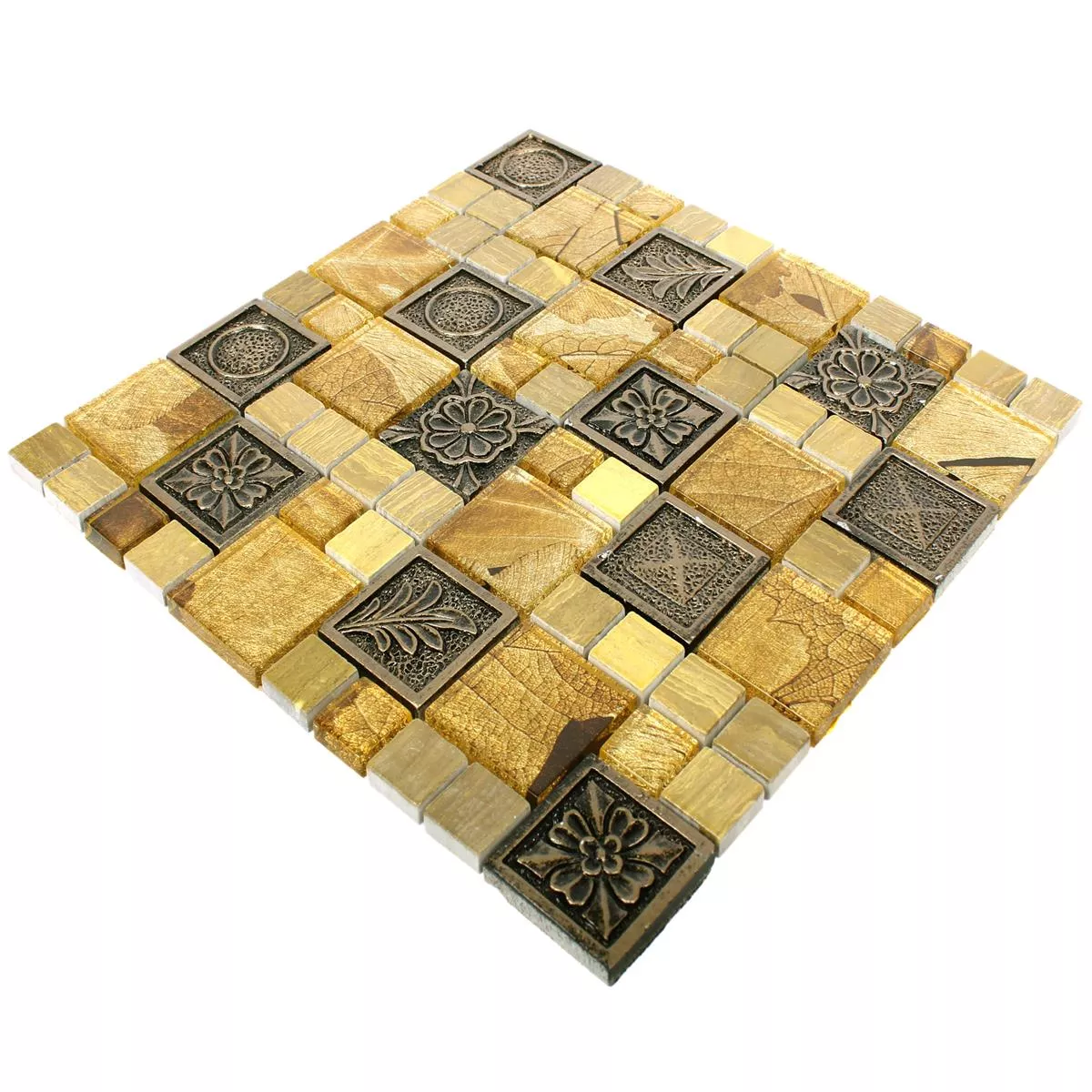 Mozaik pločica Levanzo Glass Resin Ornament Mix Gold vašoj natkrivenoj terasi ili dnevnom boravku daje mističan i orijentalni izgled. Pokrivaju upravo ovaj tip retro izgleda koji je trenutno vrlo popularan.