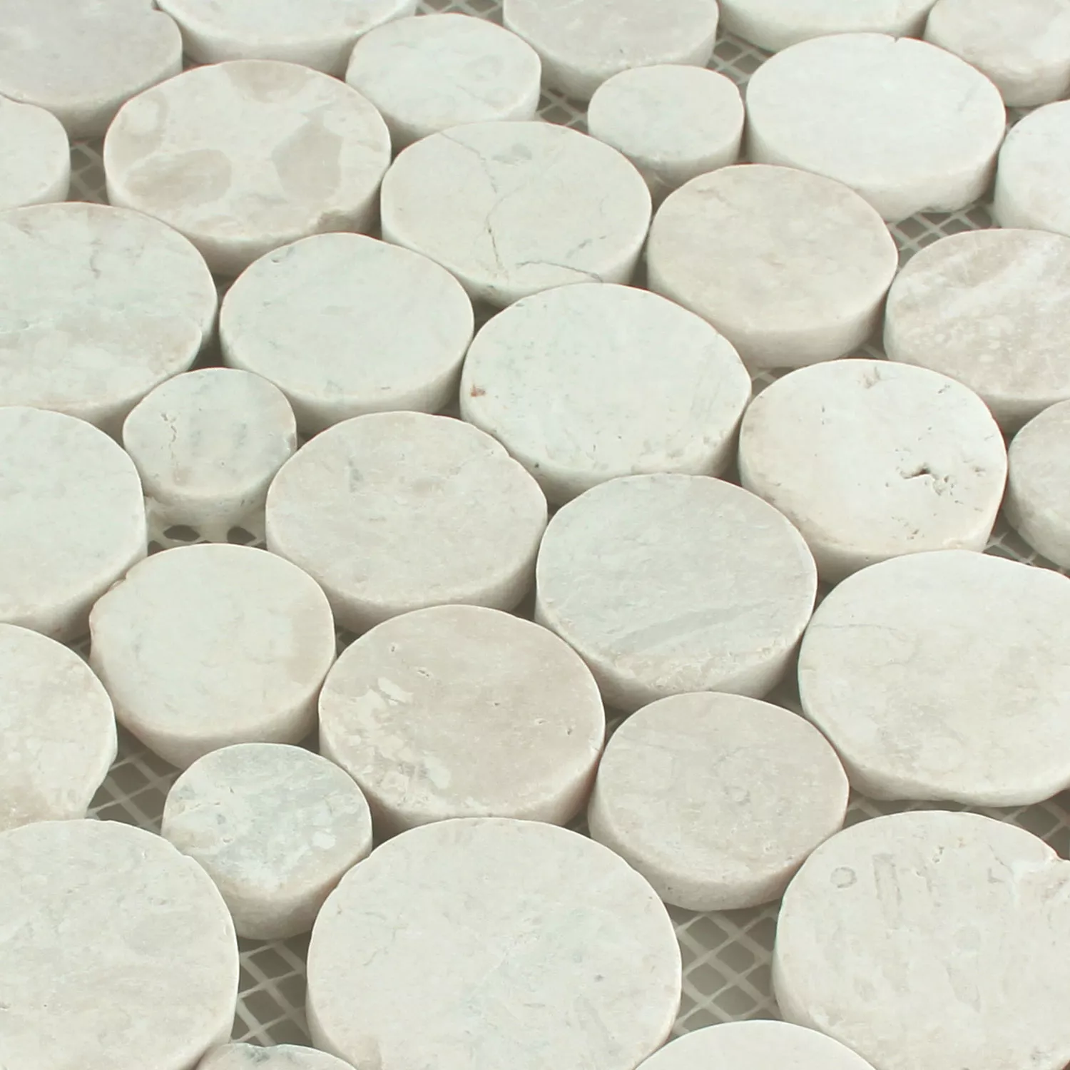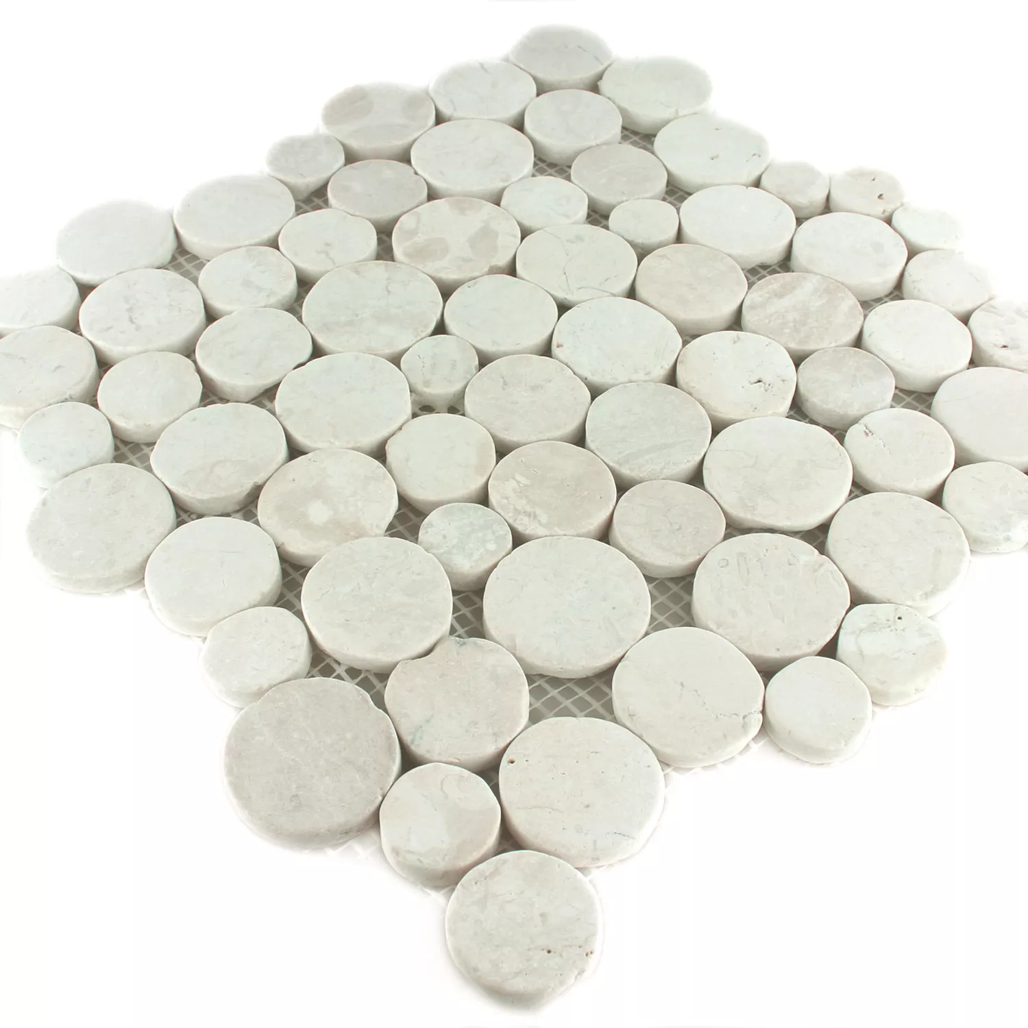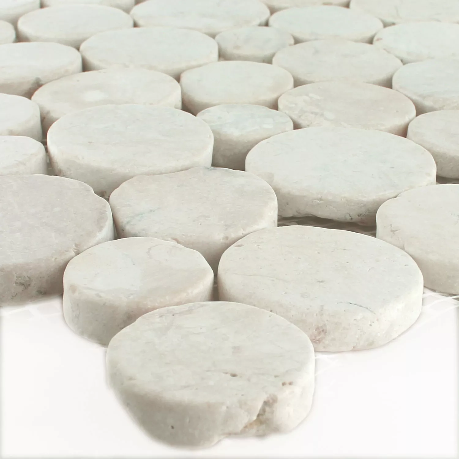 Mozaik Pločice Riječni Oblutak Coin Zaobljen Bijela