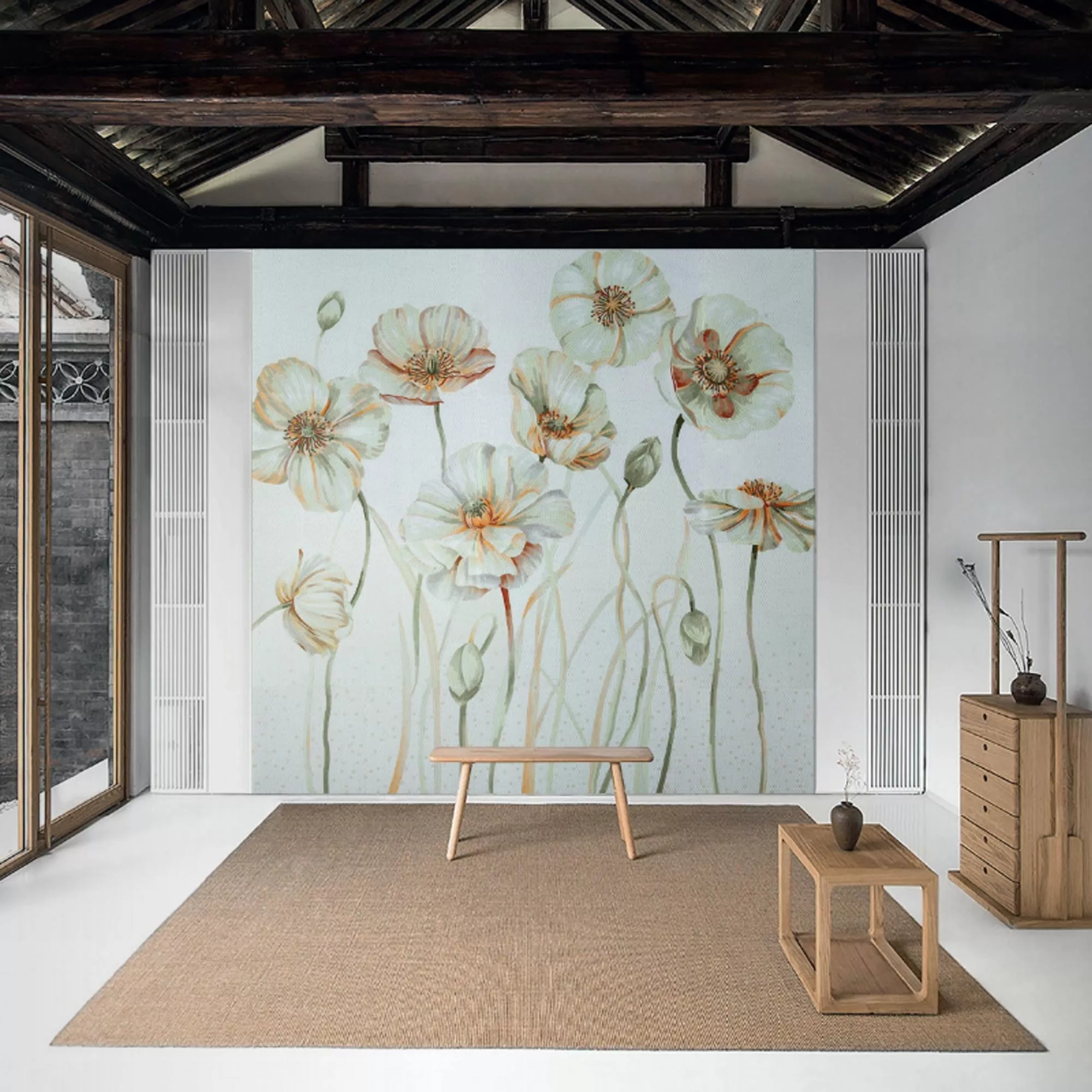 Mozaik Staklo Slika White Poppy 130x240cm