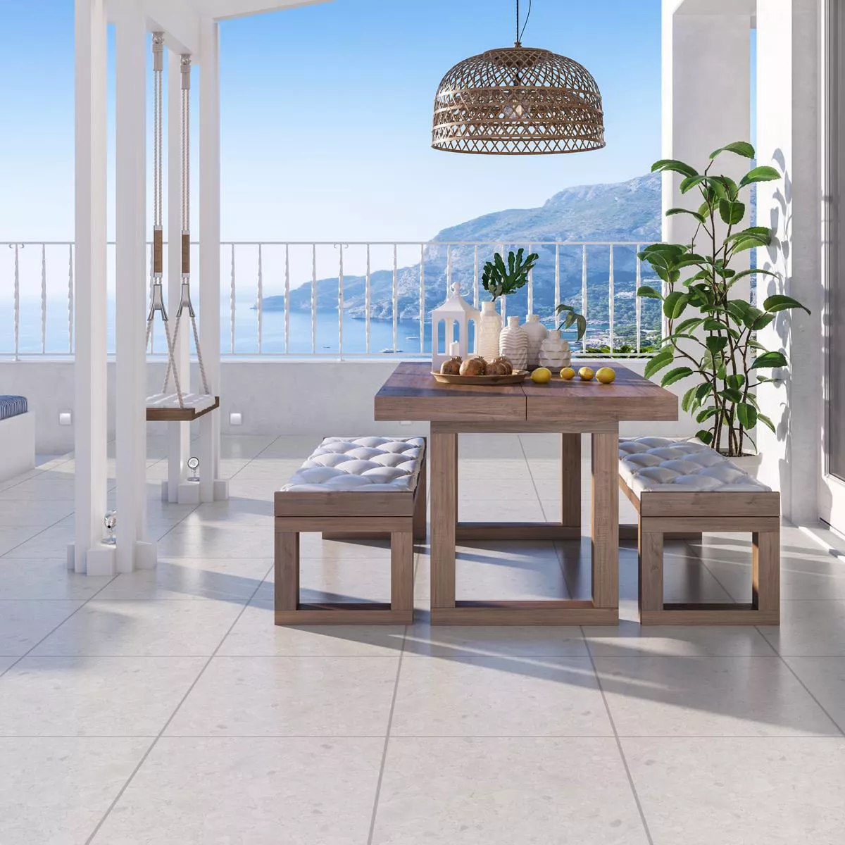 Paneli u toploj bež boji i kvadratnog formata 60 x 60 cm osiguravaju skladan i estetski dizajn. S debljinom od 20 mm nude robusno i dugotrajno rješenje za širok raspon podnih obloga. Mat površina naglašava izgled prirodnog kamena i vašem vanjskom prostoru daje elegantan, prirodan dodir.