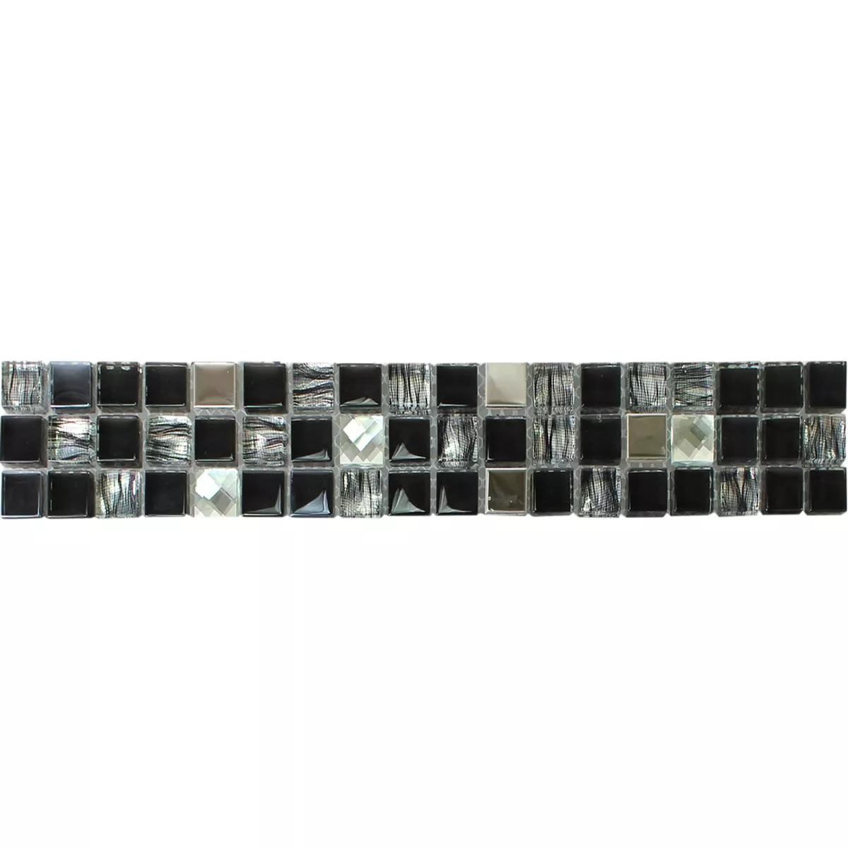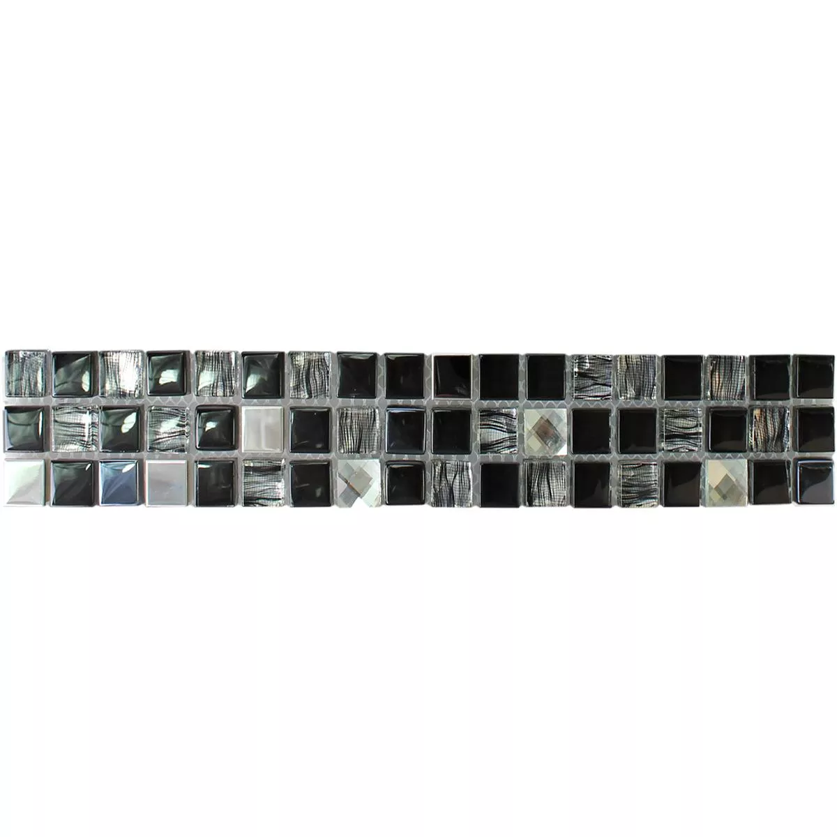 Staklo-metalni mozaik bordura "Mexicali" u crnoj, sivoj i srebrnoj boji elegantna je i svestrana opcija za uređenje interijera. S veličinom kamena 15x15mm i sjajnom završnom obradom, svakom će prostoru dodati dašak luksuza i modernosti.