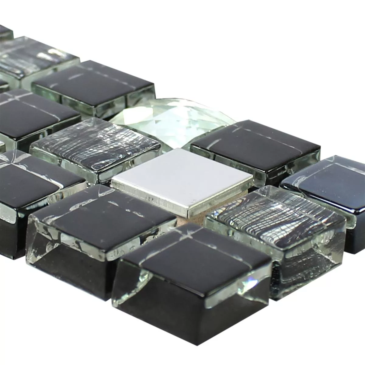 Staklo Metal Mozaikbordura Mexicali Crna Siva Srebrna