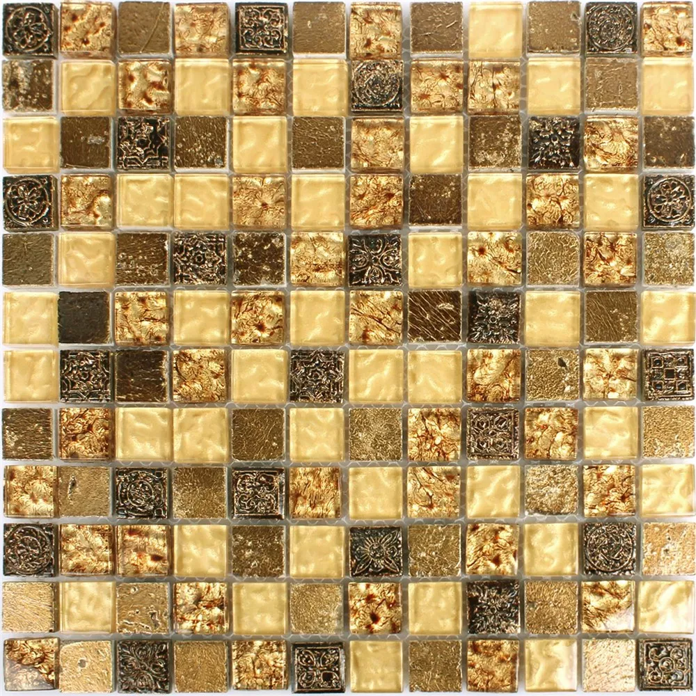 Uzorak Mozaik Pločice Staklo Prirodni Kamen Maya Zlatna