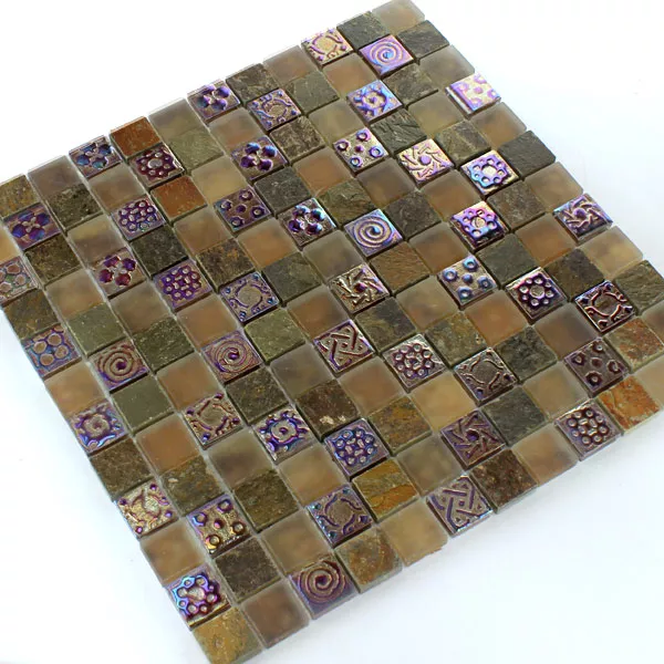 Uzorak Mozaik Pločice Staklo Vapnenac Mramor Phoenix Smeđa