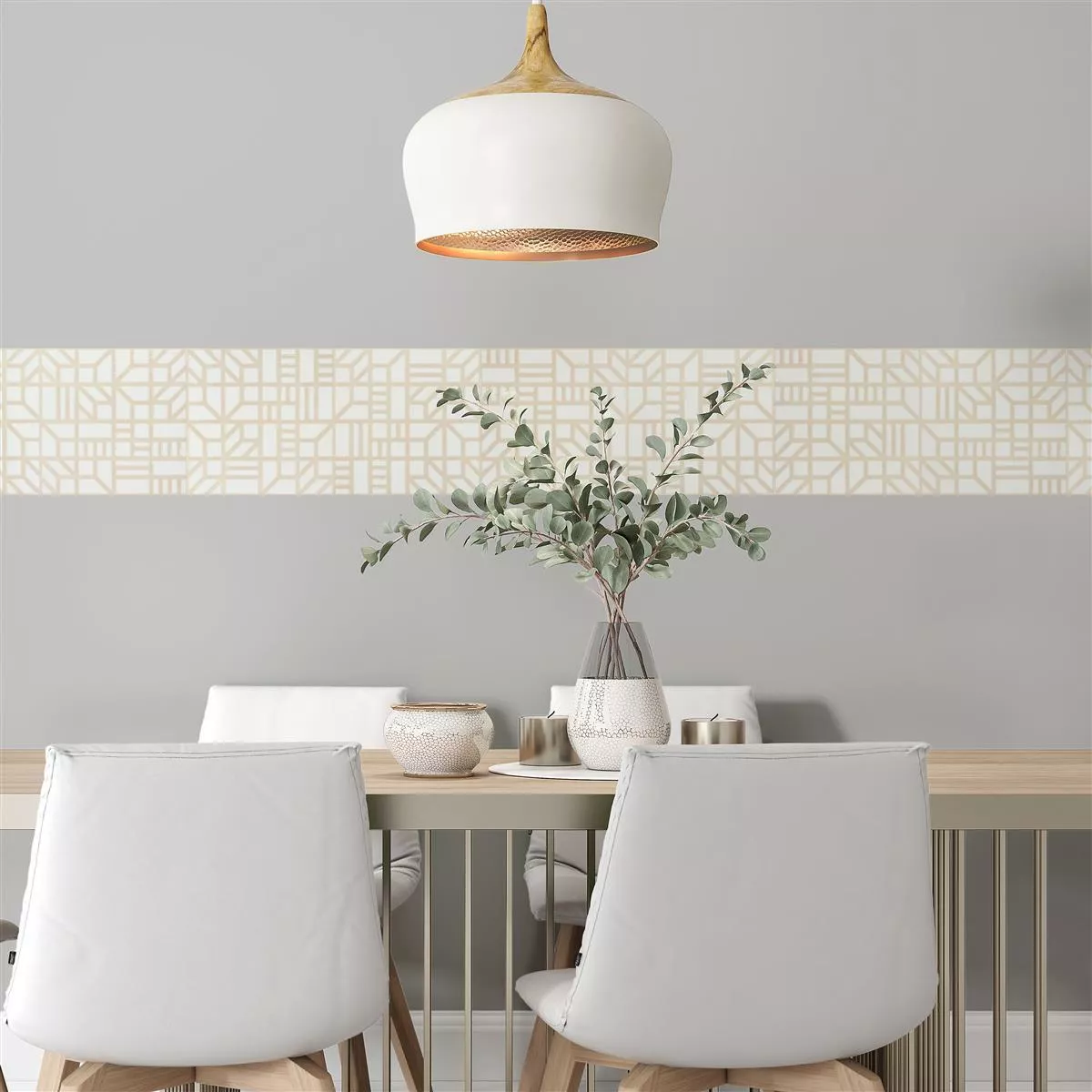 Zidne pločice “Dekor Millstone” svojim reljefnim dizajnom u vintage izgledu postavljaju posebne akcente u vašoj sobi. S veličinom 29x29cm, ove kvadratne zidne pločice predstavljaju se u skladnoj kombinaciji bijele i bež boje. Materijal od kamenine daje sjajnu i mat površinu, dok su pločice debljine 7 mm robusne, ali lake za rukovanje.